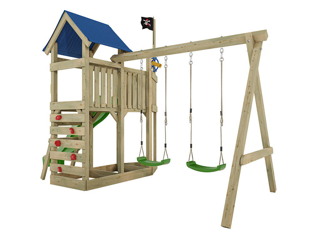 - Inklusive einer Doppelschaukel in Grün mit 9 x 9 cm starkem Schaukelbalken.