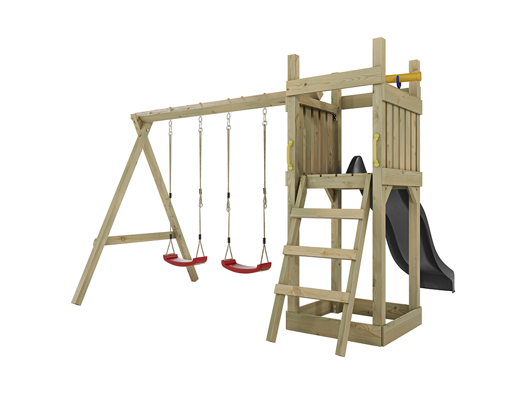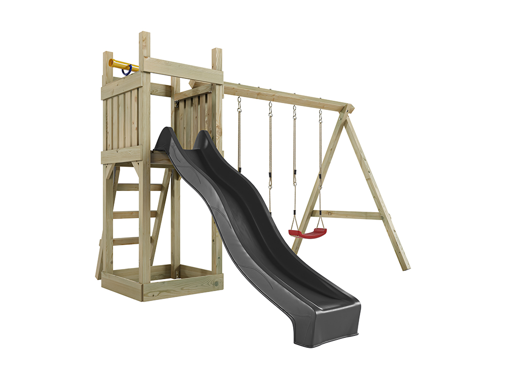 Outgarden Spielturm Skinny KDI inkl. Doppelschaukel inkl. Rutsche grau + Sitze rot