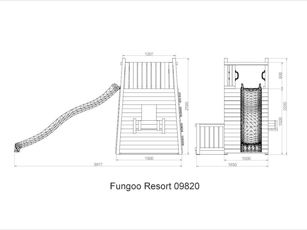 Die Grundkonstruktion ist in regelmäßigen Abständen auf etwaige Beschädigung und Fäulnisbefall zu kontrollieren. Um die Stabilität zu gewährleisten, müssen die Pfosten im Boden verankert werden. Die Schraubverbindungen sind in regelmäßigen Abständen (ca. 4 Wochen, je nach Benutzungshäufigkeit und Alter des Spielgerätes) auf festen Sitz und Stabilität zu überprüfen. Die angegebenen Maße können geringfügig abweichen.
