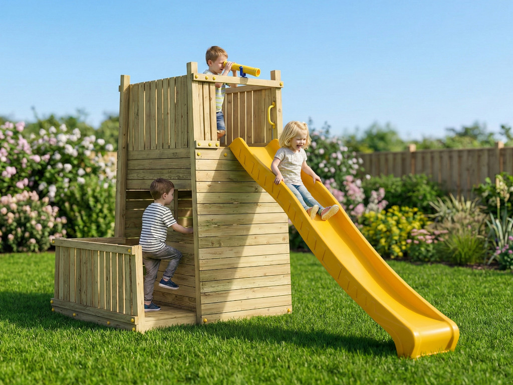 Fungoo ist der Erfinder eines ausgeklügelten Modulsystems für Gartenspielgeräte, das Kinderaugen zum Leuchten bringt. Individuelle Kombinationen aus Spieltürmen und -häusern mit Modulen wie Schaukeln, Rutschen oder Kletterwänden machen den eigenen Garten zum Abenteuerspielplatz. Dabei setzt der Hersteller auf kesseldruckimprägniertes Holz als Träger seiner Geräte. Accessoires wie ein Fernglas oder Lenkrad aus hochwertigem Kunststoff runden das Angebot ideal ab und lassen keine Wünsche mehr offen.