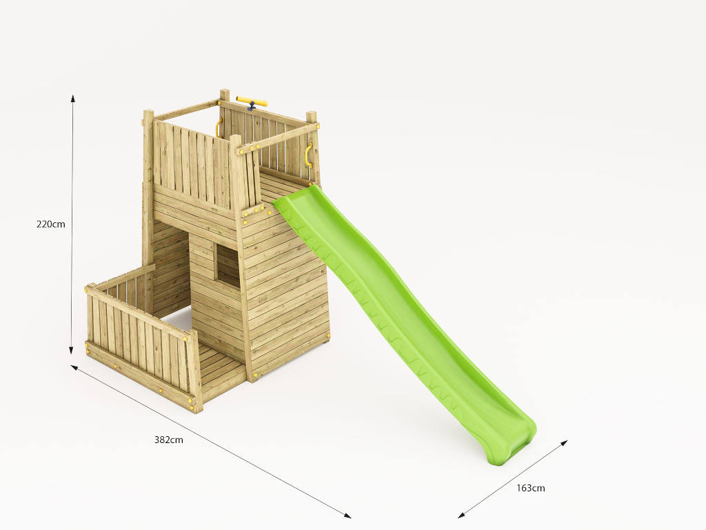 Bei diesem Spielturm steht viel Bewegung auf dem Programm. Ein eigenes Abenteuerland für dein Kind für jede Menge Spiel und Spaß! Die Firsthöhe liegt bei 220 cm.
