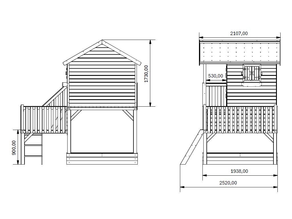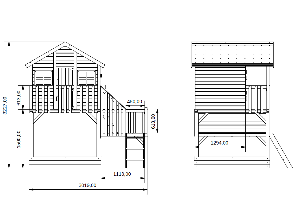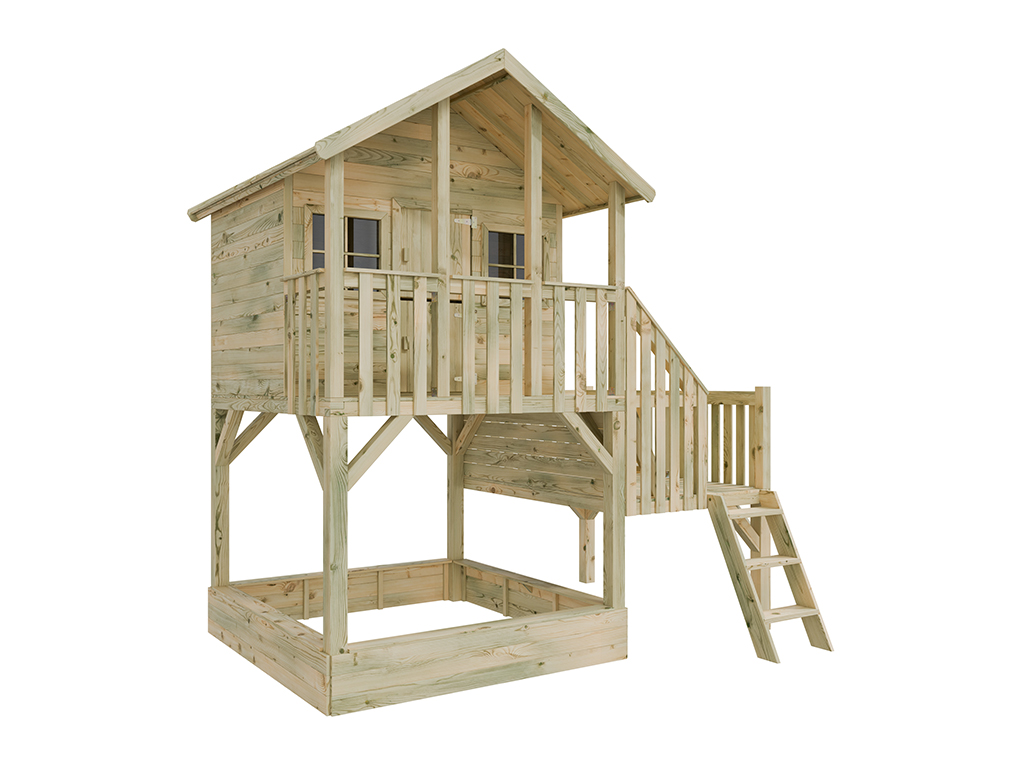 | Lieferumfang: | Stelzenhaus Big House L, Anbaupodest, Leiter, Fensterläden, Sandkasten, detaillierte Montageanleitung |