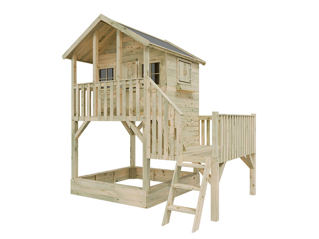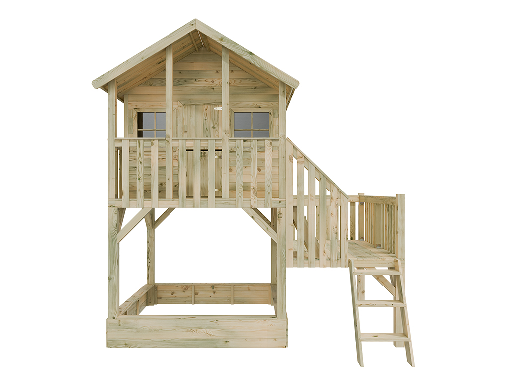 Das große Stelzenhaus mit großzügigem Seitenpodest lässt Kinderherzen höher schlagen.