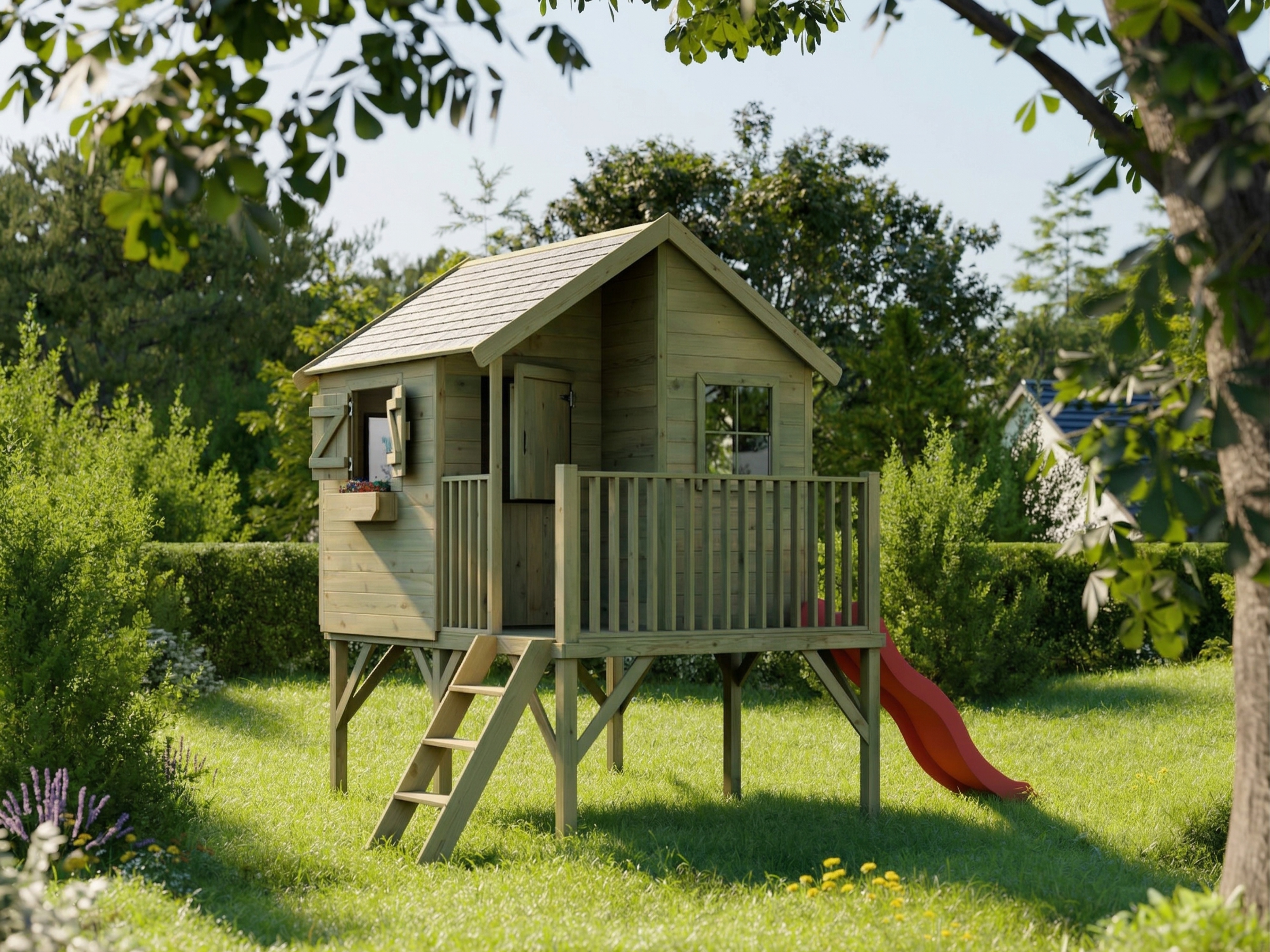 Prestige Garden Stelzenhaus Brüssel kesseldruckimprägniert inkl. Wasserrutsche tweeb rot