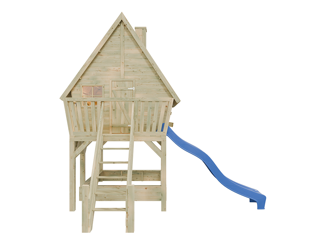 Stelzenhaus Funny XXL mit Sandkasten KDI inkl....B x T x H: 201 x 188 x 303 cm, inkl. 2 Fenster + Blumenkasten, inkl. Rutsche blau + Sandkasten