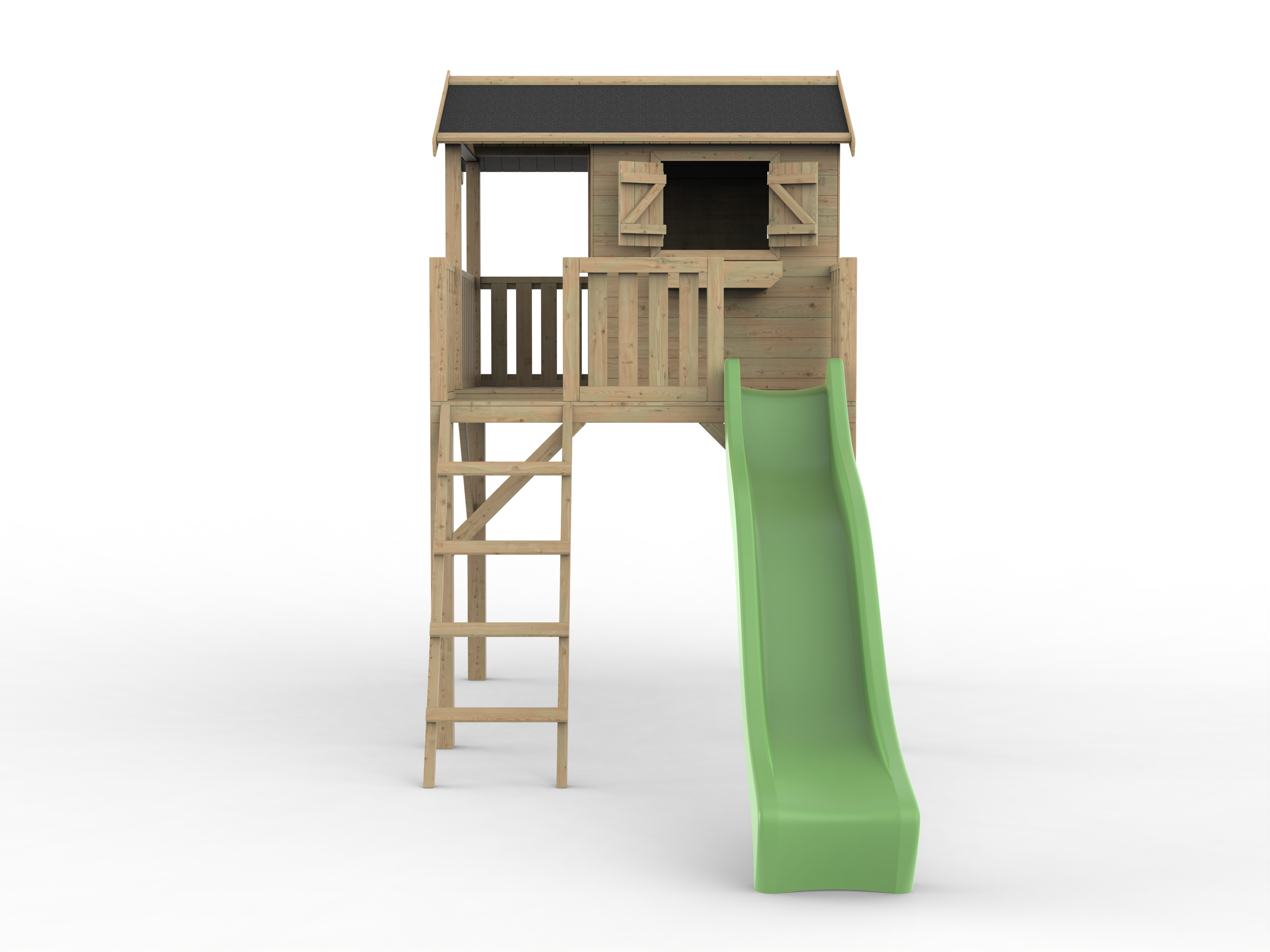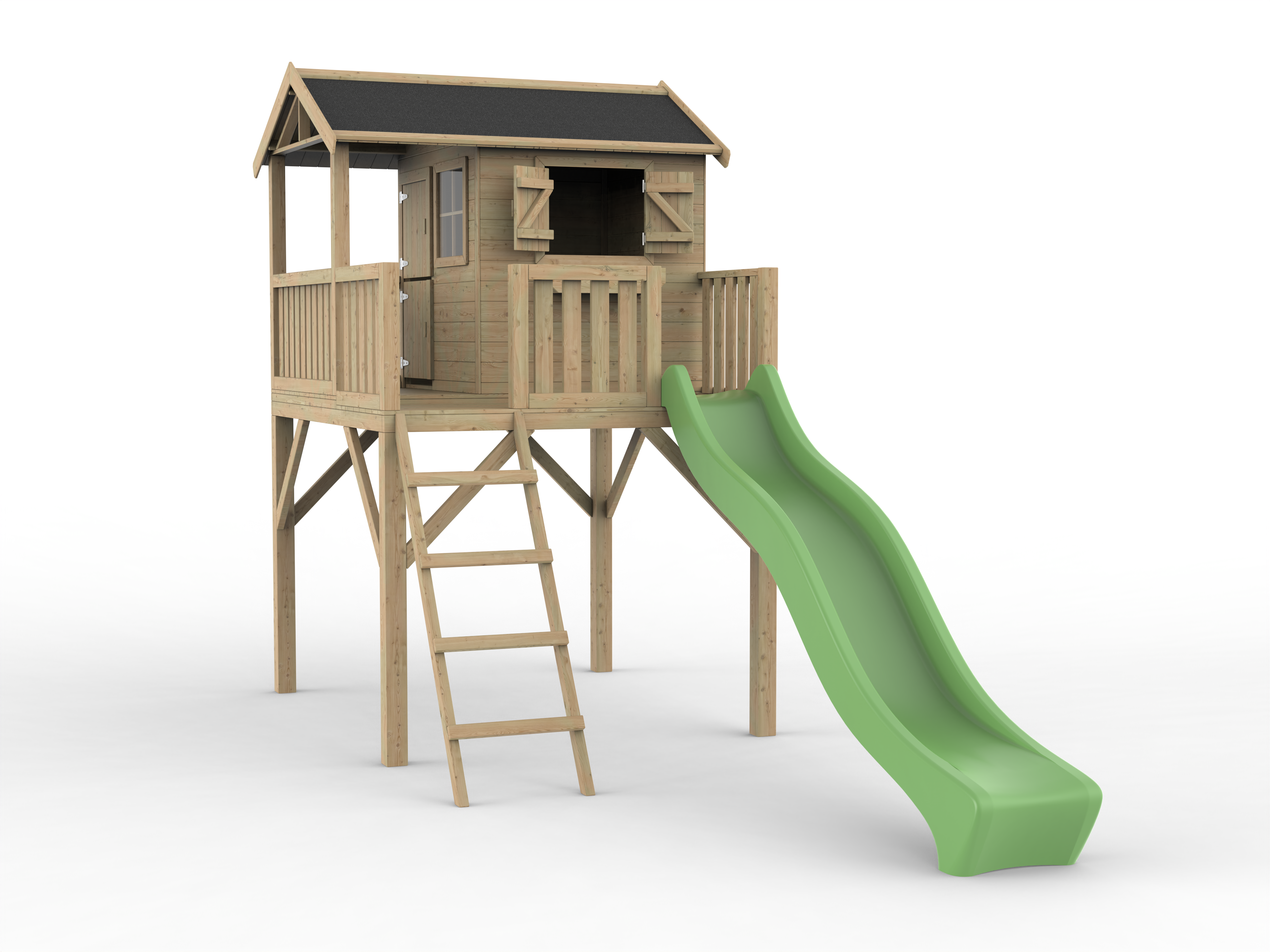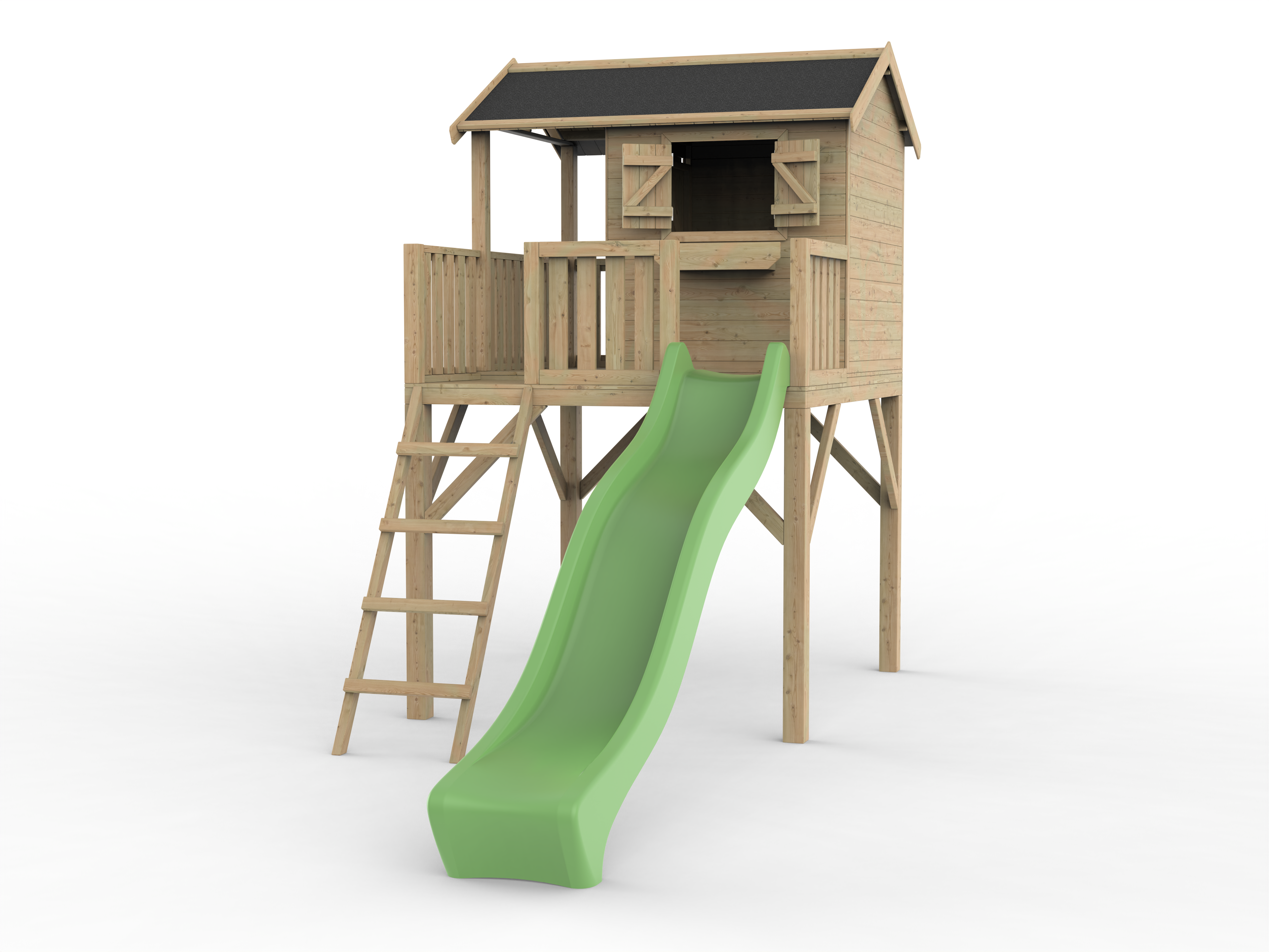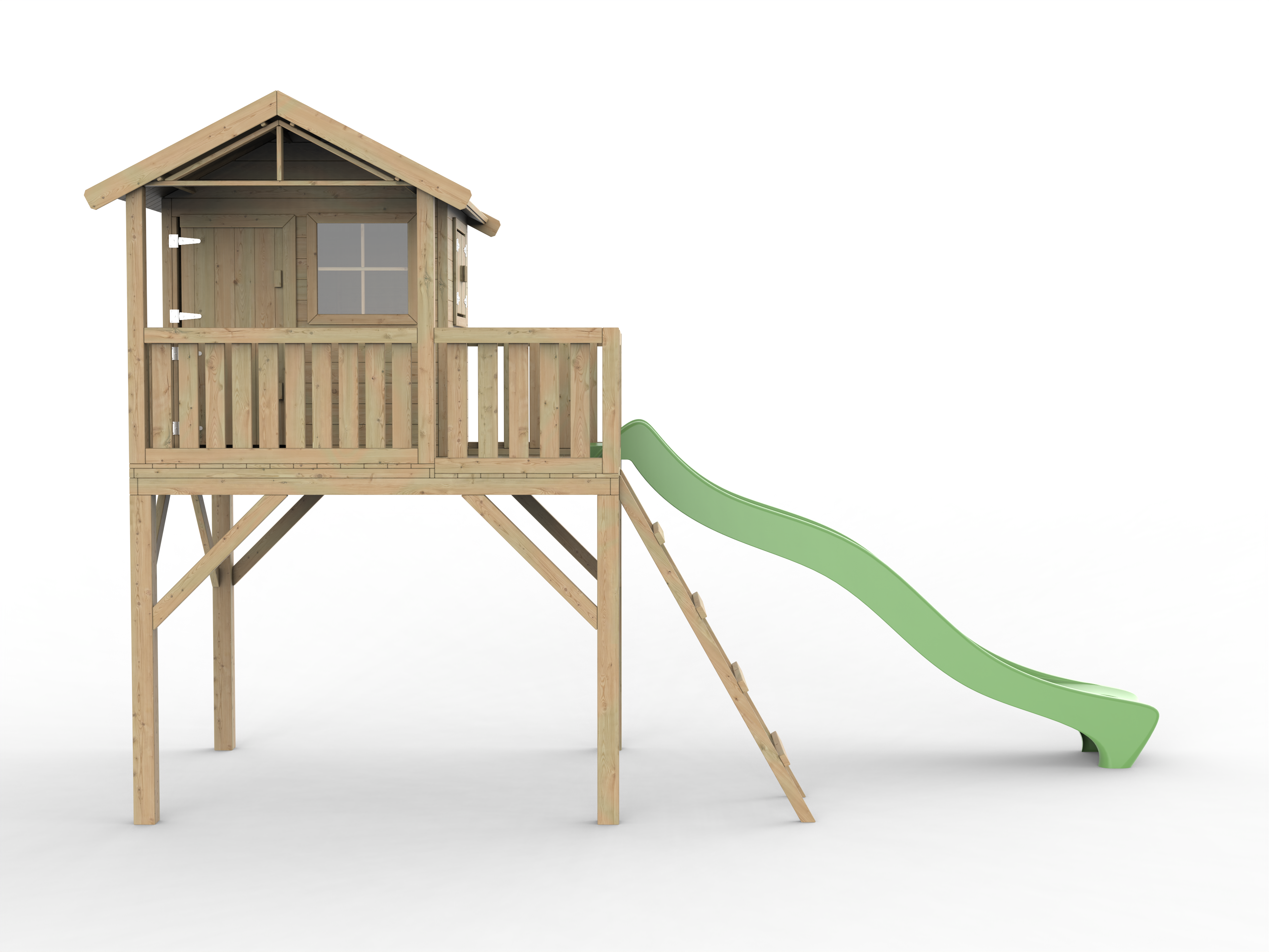 Stelzenhaus Funny XXL mit Sandkasten KDI inkl....B x T x H: 201 x 188 x 303 cm, inkl. 2 Fenster + Blumenkasten, inkl. Rutsche grün + Sandkasten