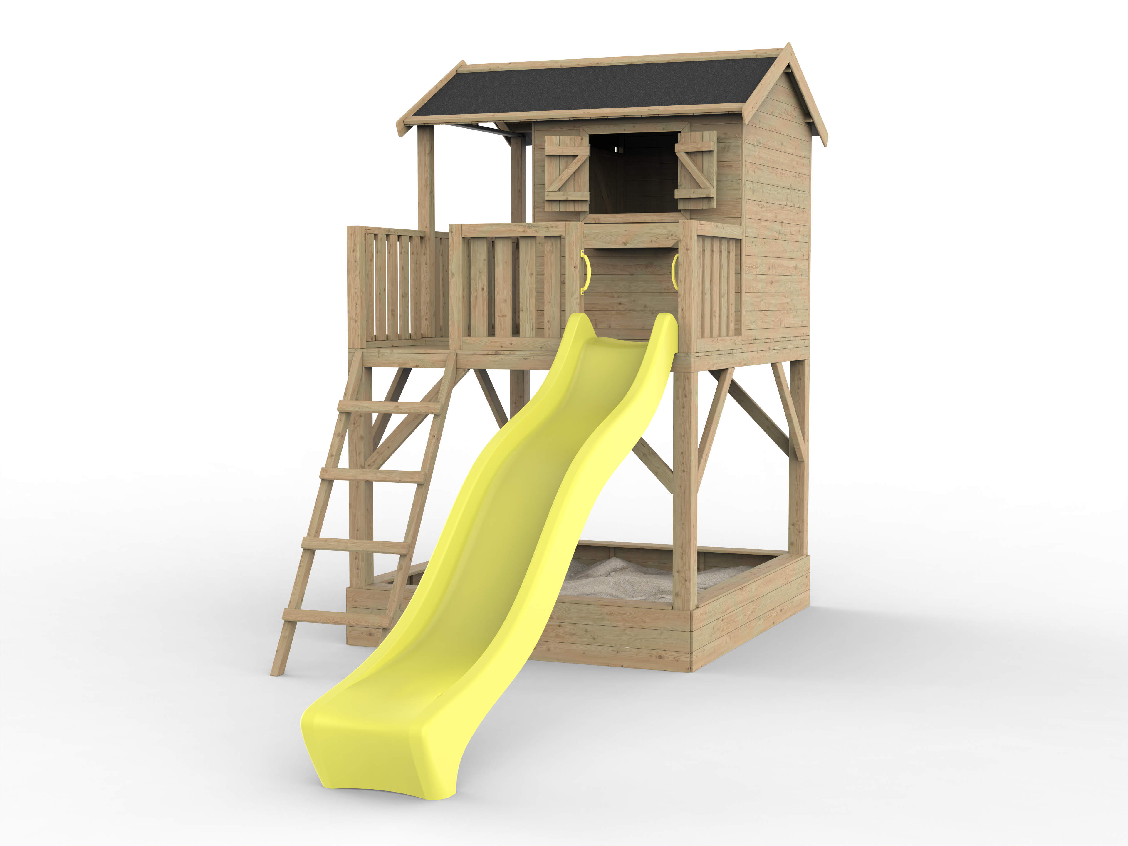 Stelzenhaus Nele naturbelassen inkl. Rutsche gelbB x T x H: 120 x 123 x 275 cm, inkl. Handlauf + Sandkasten + Kletterwand, inkl. Rutsche gelb