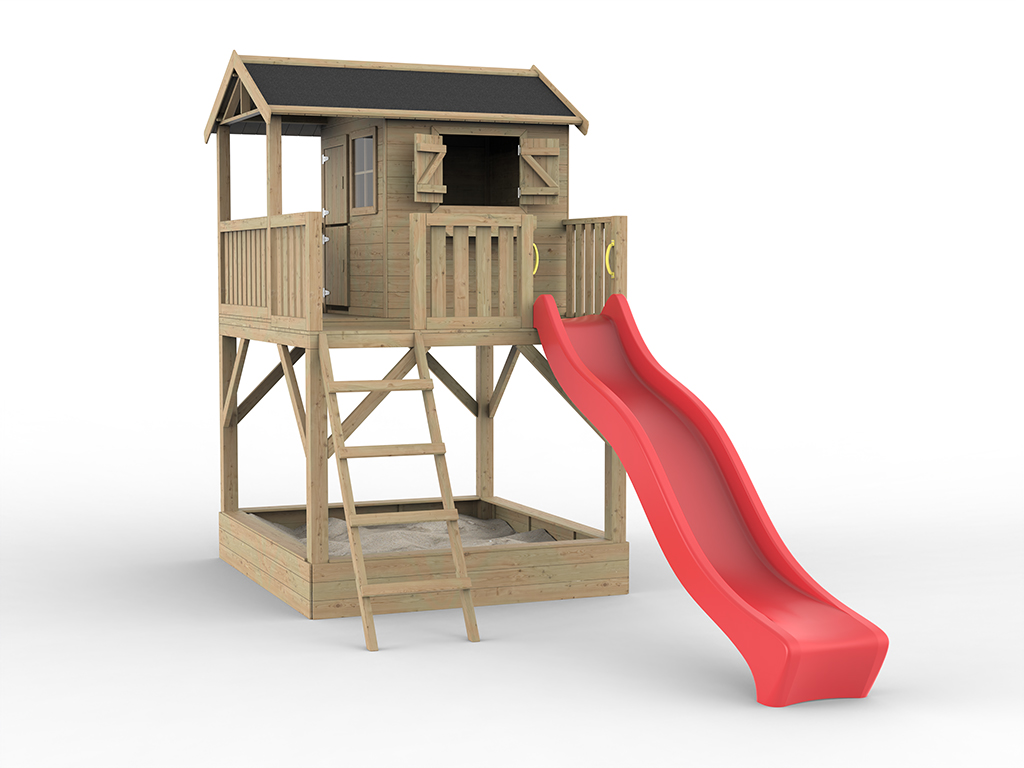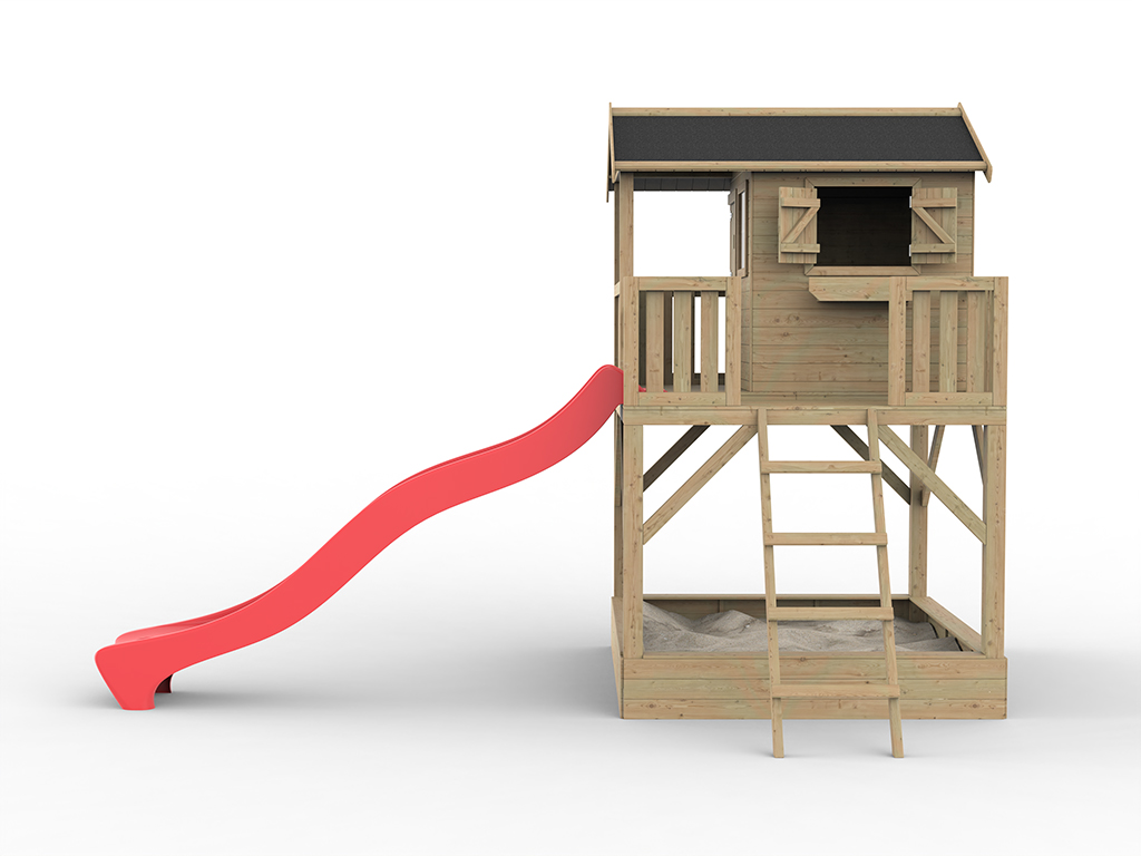 | Lieferumfang: | Stelzenhaus Funny XXL, Blumenkasten, Fensterläden, Veranda, Balkon, detaillierte Montageanleitung, Rutsche rot |