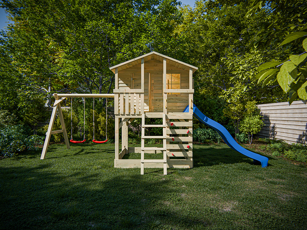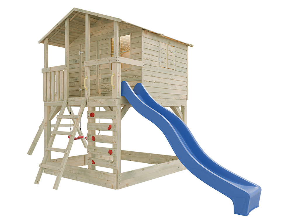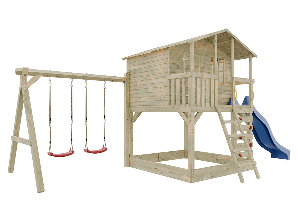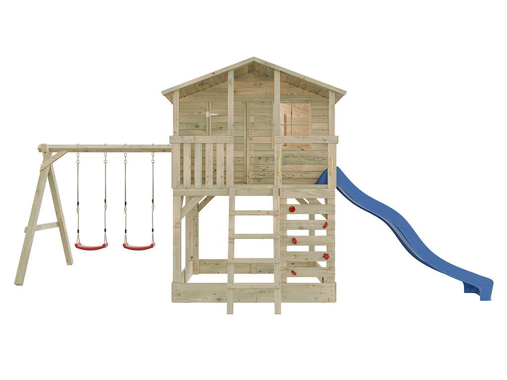 Stelzenhaus Henry kesseldruckimprägniert inkl. Doppelschaukel und Rutsche blau