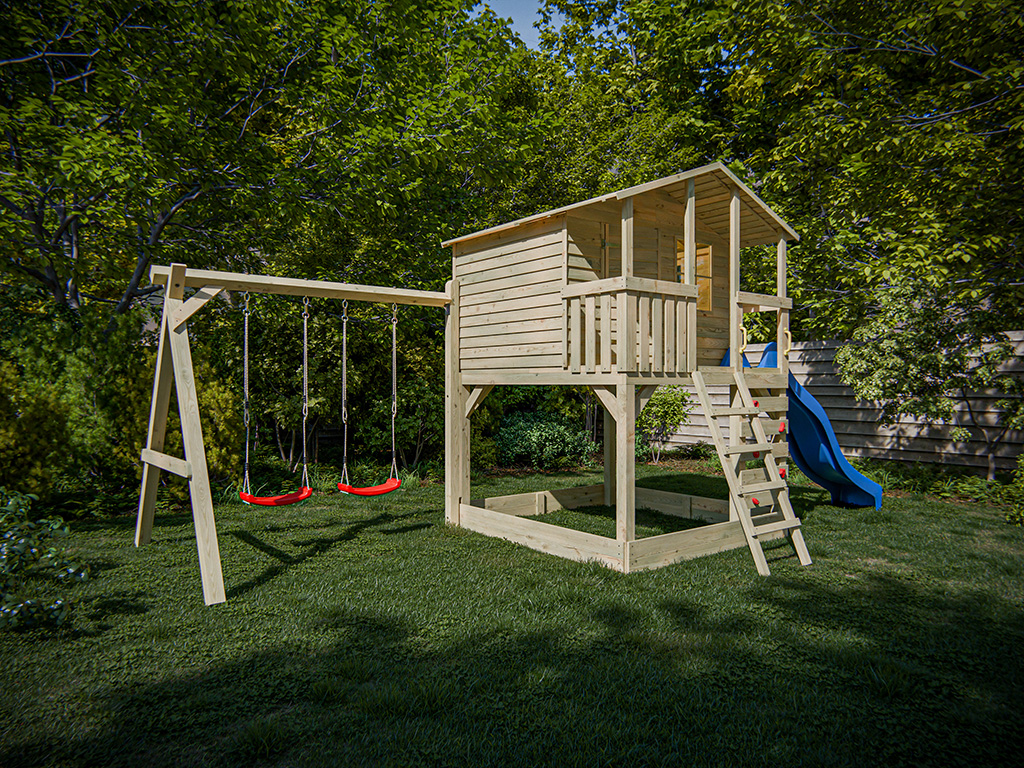 • Inkl. Doppelschaukel und Rutsche