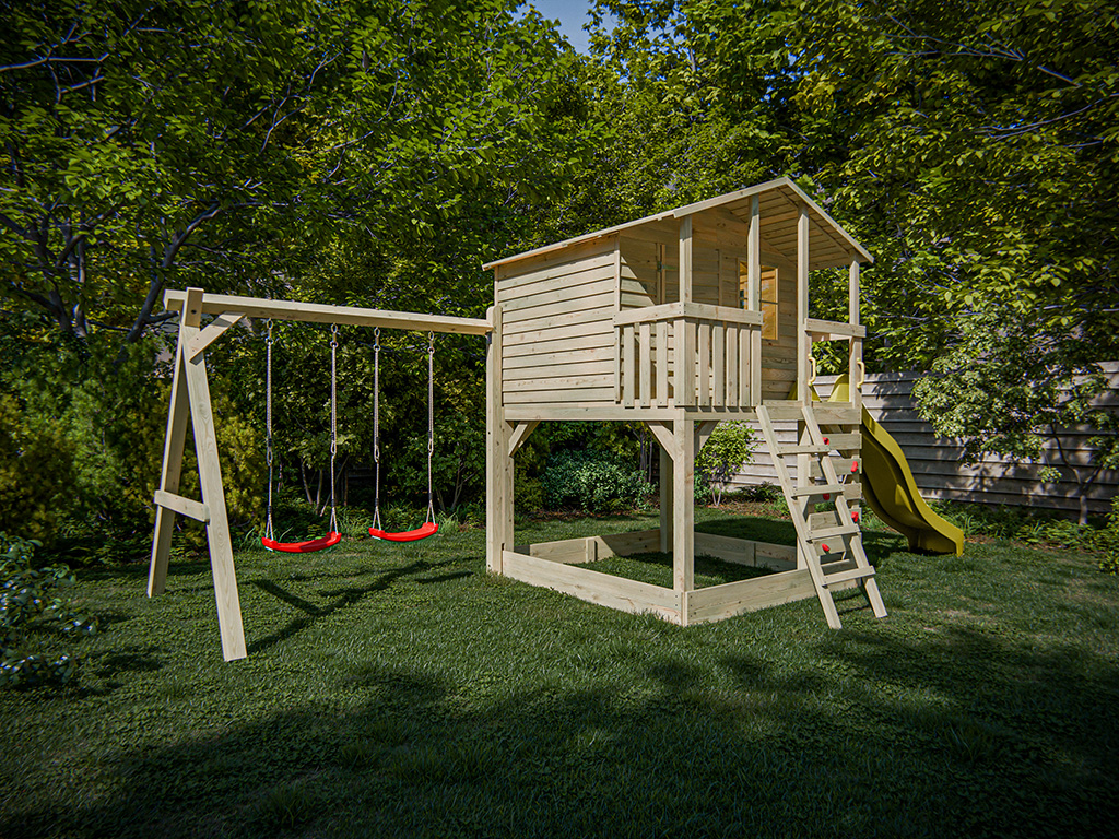 • Inkl. Doppelschaukel und Rutsche