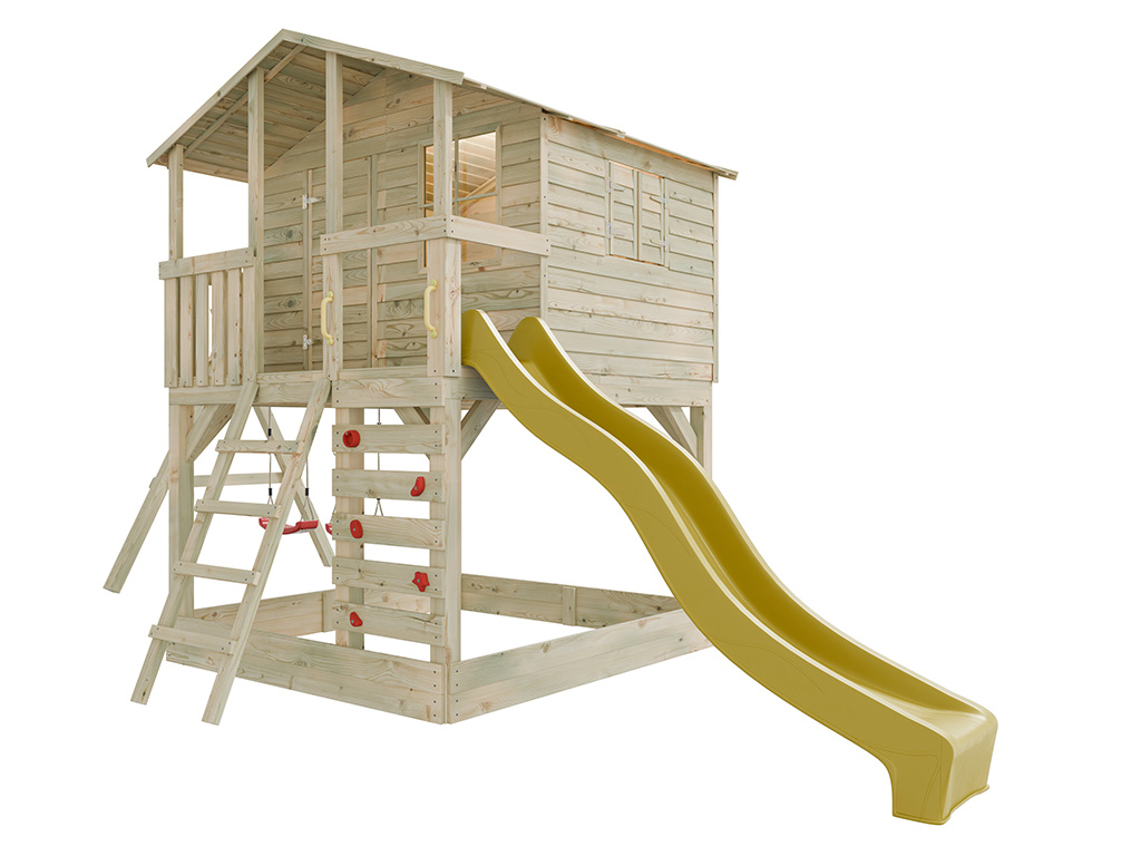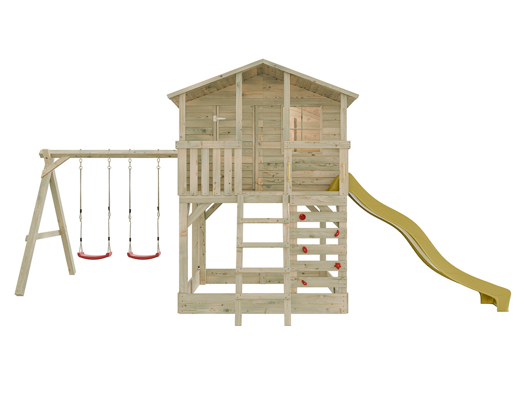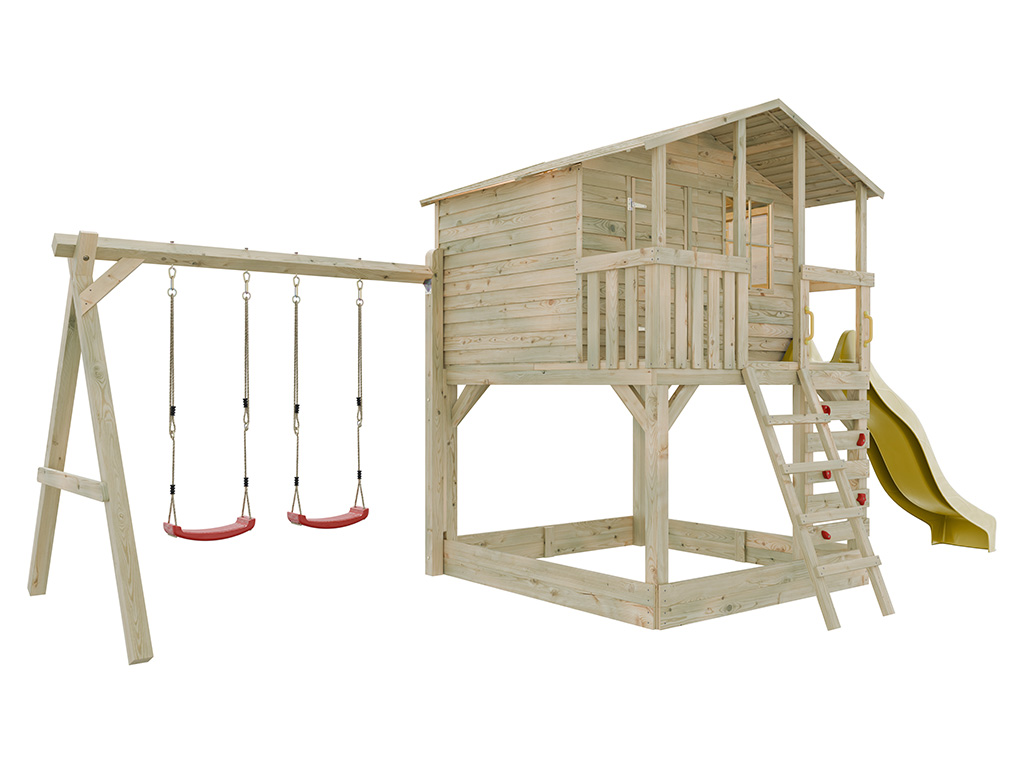 Stelzenhaus Henry kesseldruckimprägniert inkl. Doppelschaukel und Rutsche gelb