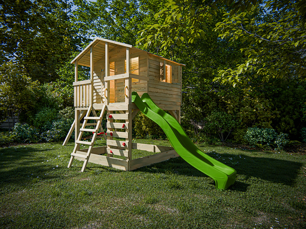 Spielhaus Barcelona kesseldruckimprägniertB x T x H: 248 x 161 x 239 cm, 2 Etagen, inkl. Schlafboden + Blumenkästen
