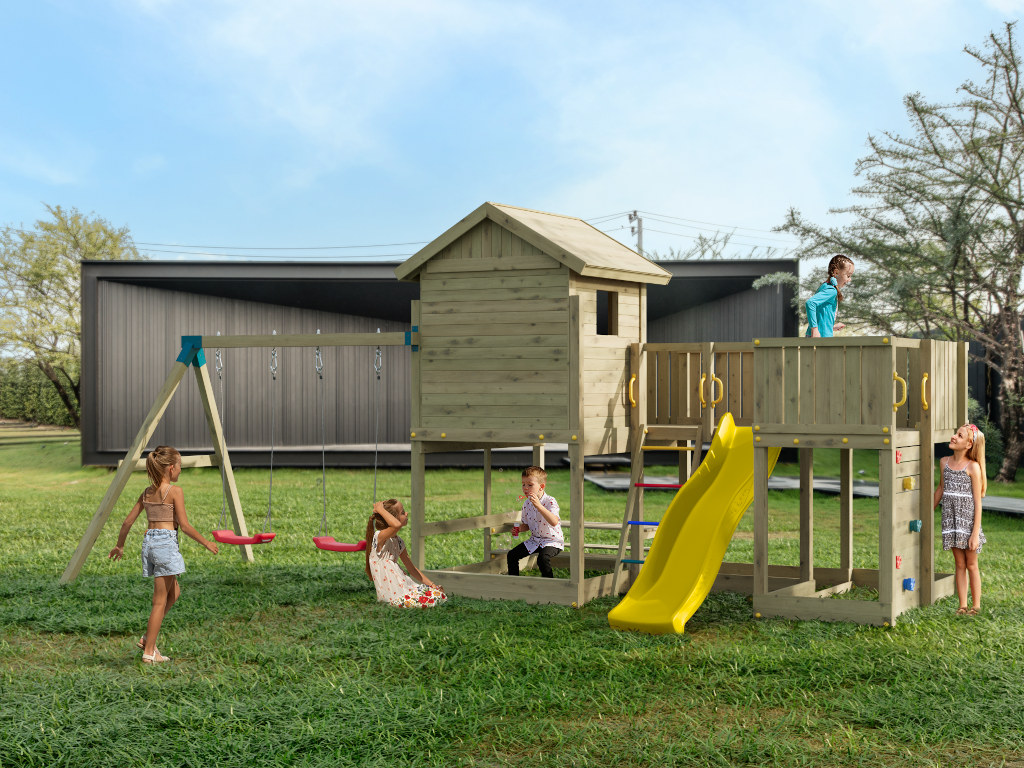 Fungoo ist der Erfinder eines ausgeklügelten Modulsystems für Gartenspielgeräte, das Kinderaugen zum Leuchten bringt. Individuelle Kombinationen aus Spieltürmen und -häusern mit Modulen wie Schaukeln, Rutschen oder Kletterwänden machen den eigenen Garten zum Abenteuerspielplatz. Dabei setzt der Hersteller auf kesseldruckimprägniertes Holz als Träger seiner Geräte. Accessoires wie ein Fernglas oder Lenkrad aus hochwertigem Kunststoff runden das Angebot ideal ab und lassen keine Wünsche mehr offen.