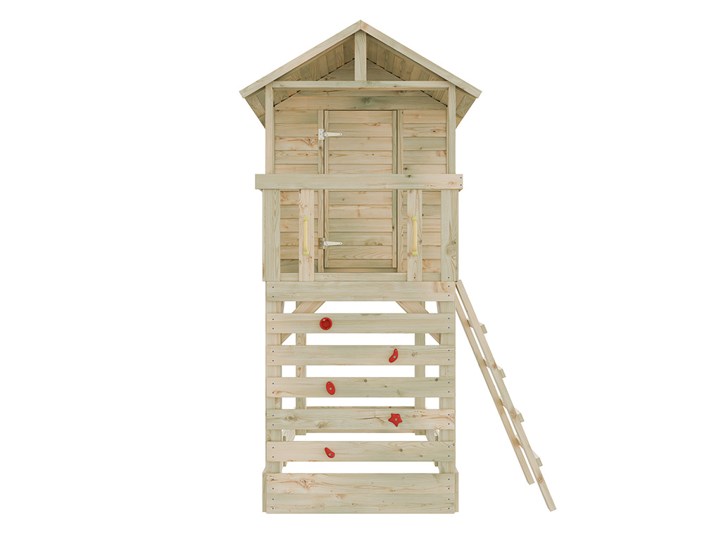 Im Lieferumfang ist eine schräge Leiter für einen sicheren Aufstieg enthalten. Für zusätzlichen Spielspaß ist das Stelzenhaus mit einer Kletterwand und 5 roten Klettersteinen ausgestattet. - Einfacher Aufbau
