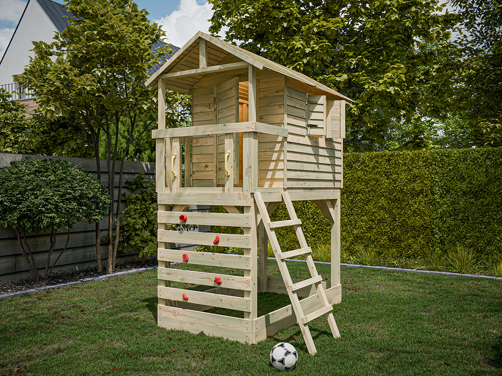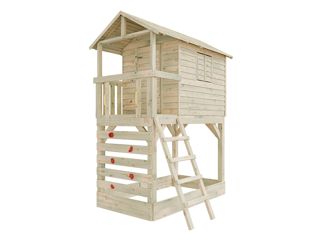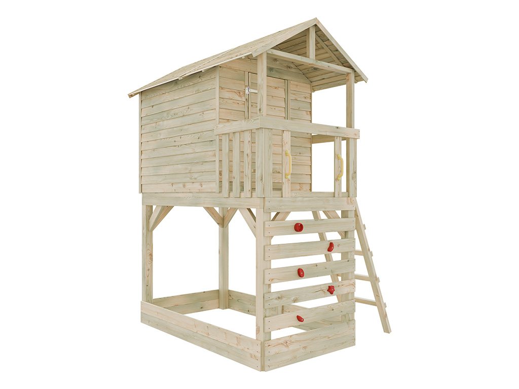 Im Lieferumfang ist eine schräge Leiter für einen sicheren Aufstieg enthalten. Für zusätzlichen Spielspaß ist das Stelzenhaus mit einer Kletterwand und 5 roten Klettersteinen ausgestattet. - Einfacher Aufbau