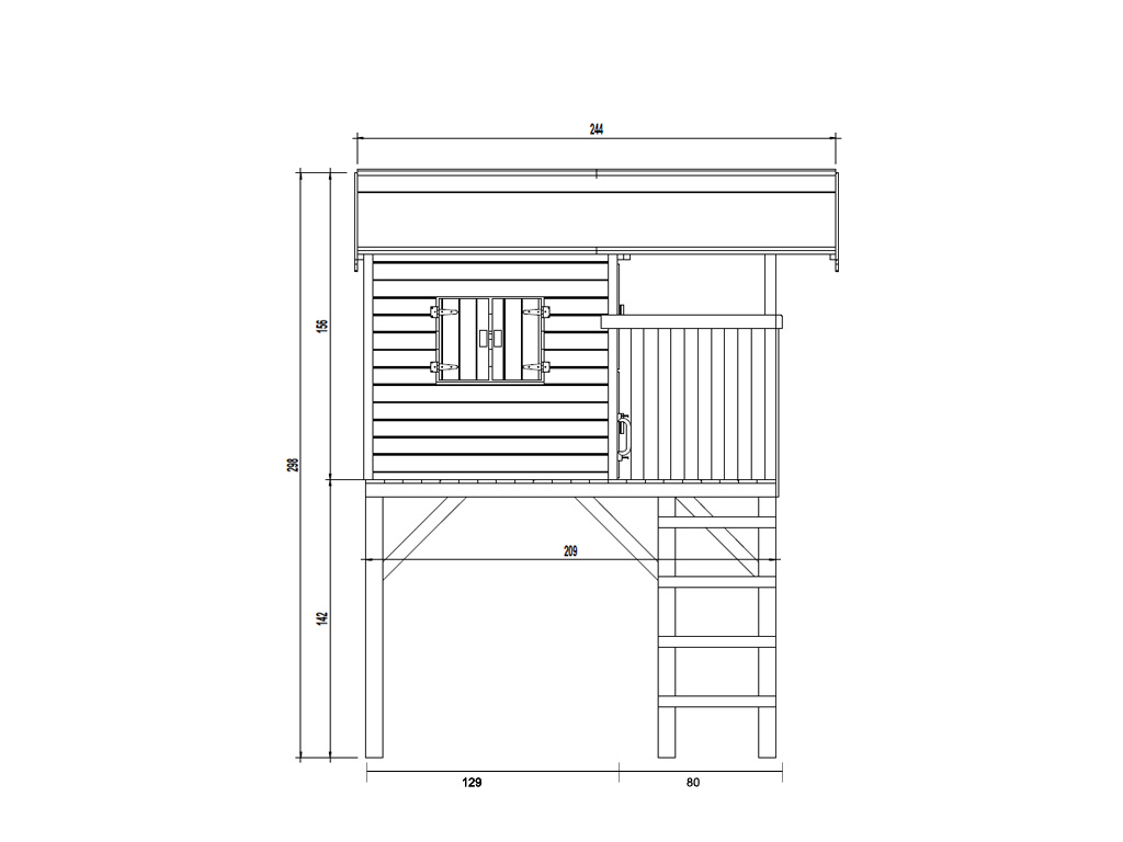 Stelzenhaus Funny L KDIB x T x H: 154,5 x 186 x 213,5 cm, Treppe, 2 Fenster + Blumenkasten