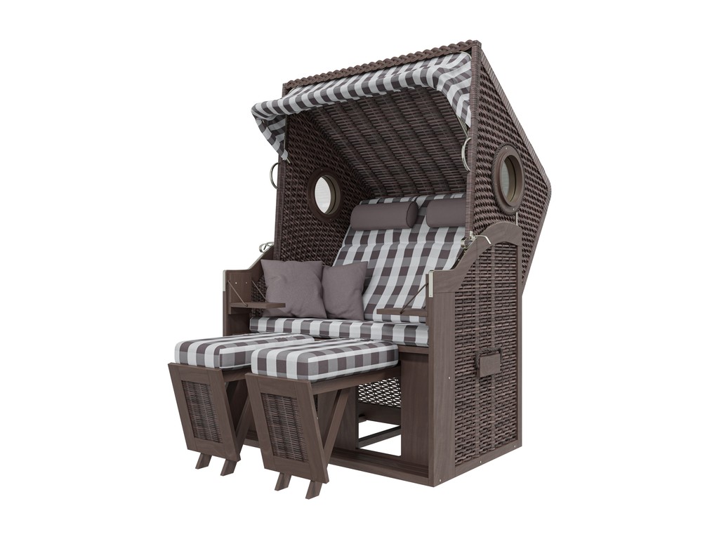 Strandkorb Twin View grau Design 429B x T x H: 120 x 80 x 160 cm, seitliche Bullaugen, inkl. Festpolsterung