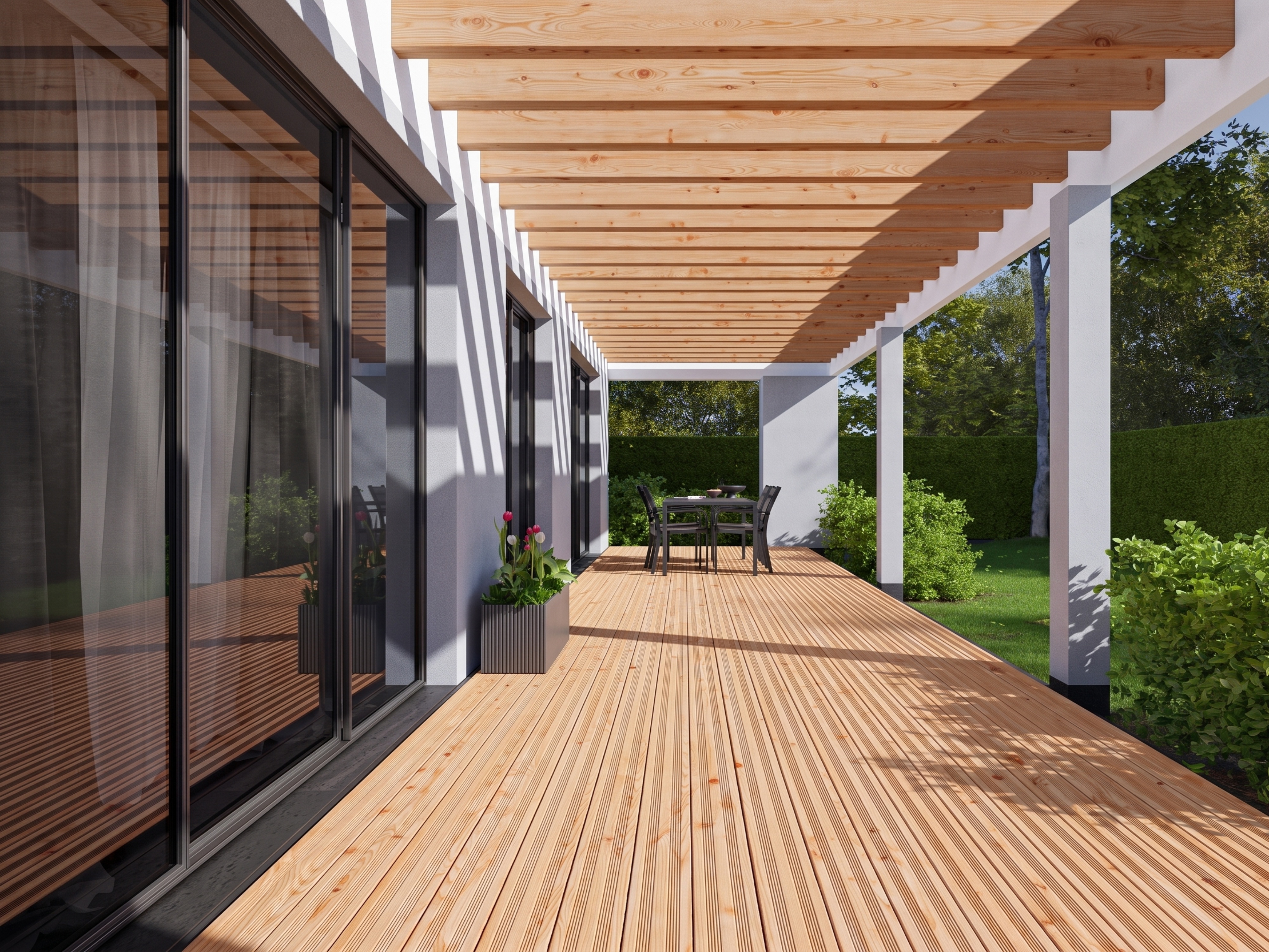 Bitte beachte, dass Farben und Maße unserer Holzterrassendielen produktionsbedingt sowie durch natürliche Materialeigenschaften leicht variieren können. Geringfügige Abweichungen stellen keinen Qualitätsmangel dar.