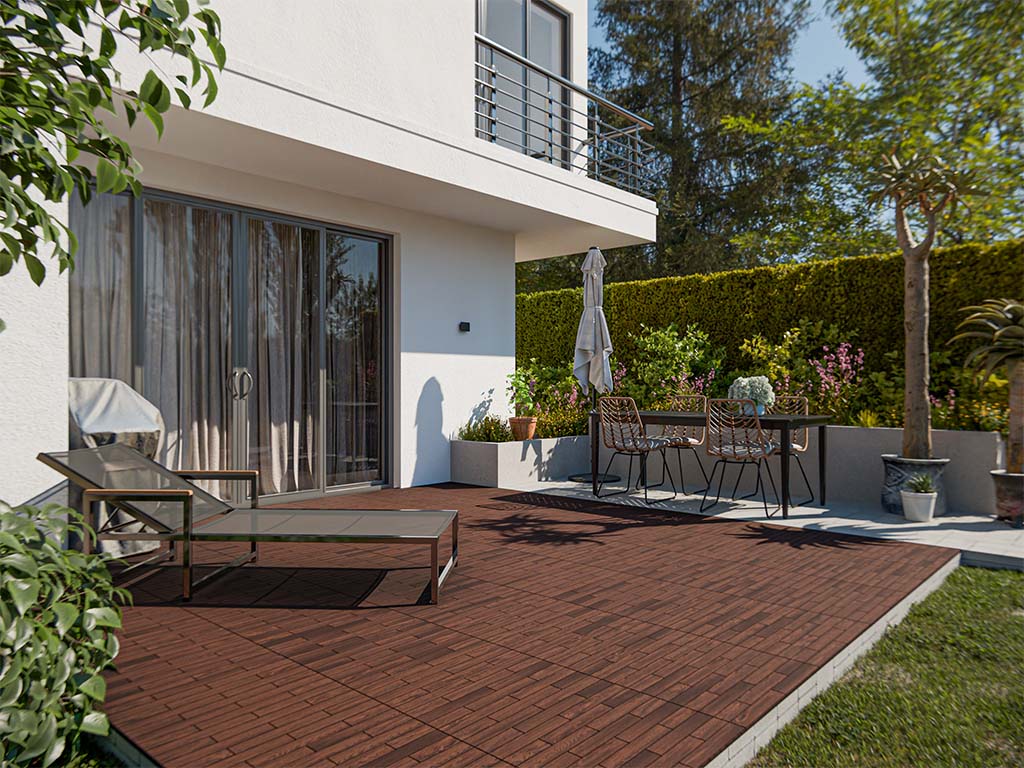 WPC-Terrassenfliese Basic braunPerfekt auch für Balkone, 11 Fliesen = 1 m², 30 x 30 cm, 11 Stück pro Pack