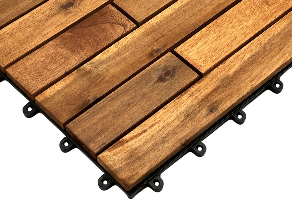 Terrassenfliese Akazie Natur hell10 Stück pro Pack, ohne Schrauben, 12 Latten Optik, 30 x 30 cm, 24 mm stark, PVC-Träger