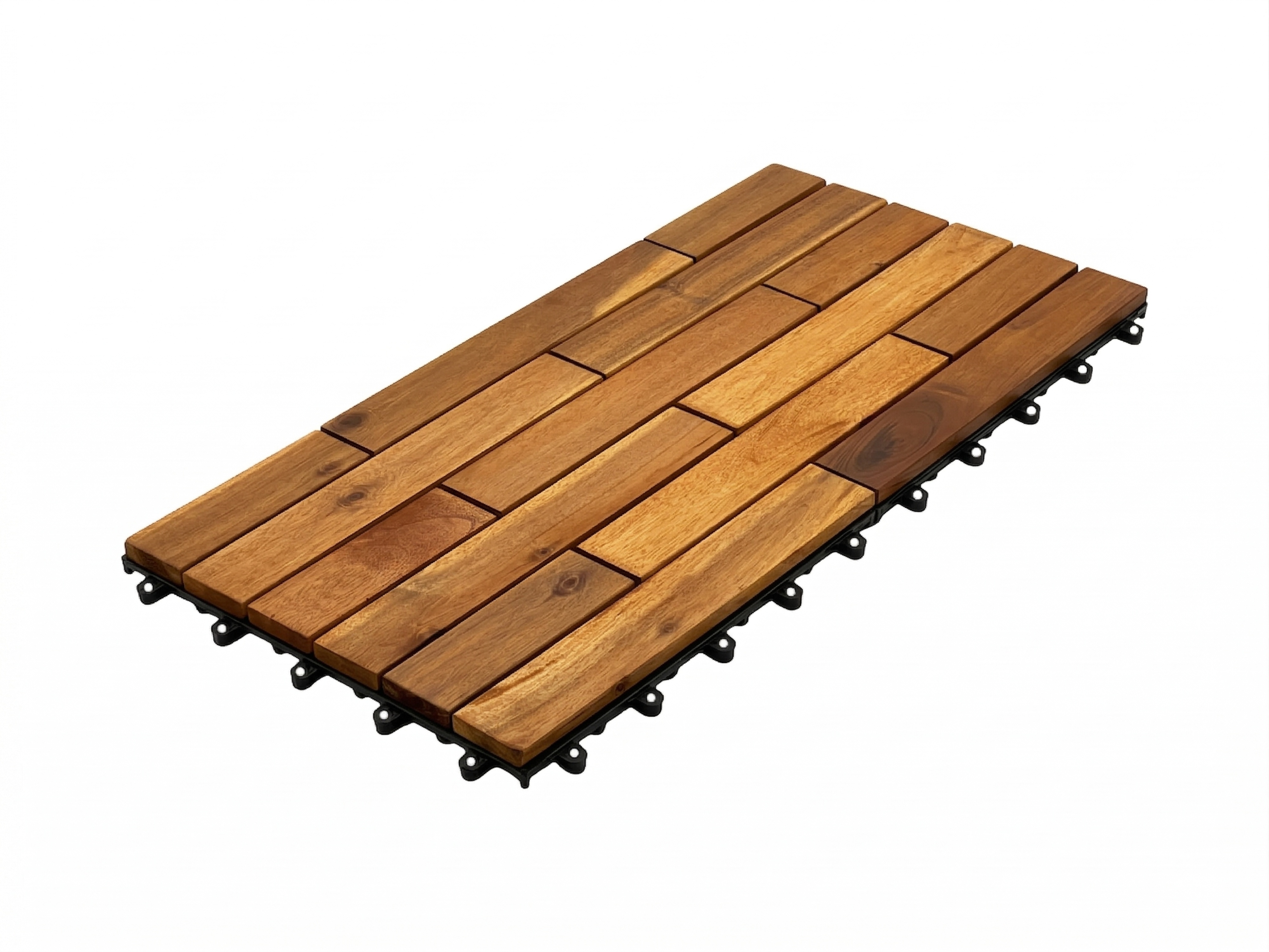 Terrassenfliese Akazie DUNKEL-geölt24 mm stark, 60 x 30 cm, Klick-System, PVC-Gitter, 6 Stück pro Pack