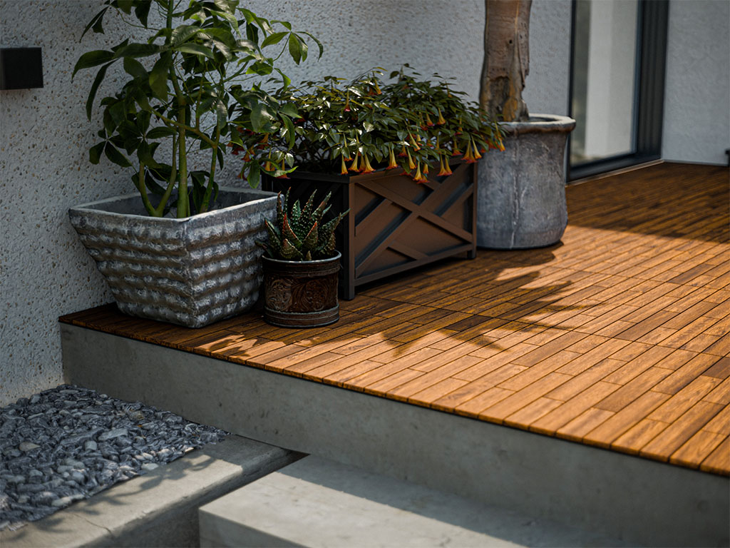 Diese 24 mm starken Terrassenfliesen werden aus Akazienholz hergestellt. Sie sind multifunktional und daher flexibel im Innen- und Außenbereich einsetzbar. Die Fliesen sind mit einem praktischen Stecksystem ausgestattet, was einen schnellen und unkomplizierten Auf- und Abbau ermöglicht.