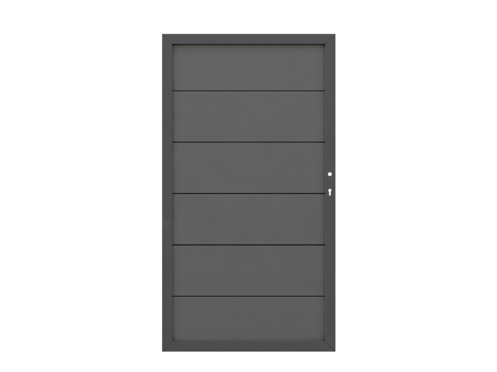 Das Tor DESIGN WPC in Anthrazit mit umlaufendem Aluminium-Rahmen bietet dir einen stabilen und stilvollen Zugang zu deinem Grundstück. Mit den Maßen 98 x 180 cm handelt es sich um ein Einzeltor, das sich dank variablem DIN-Anschlag flexibel an deine Einbausituation anpassen lässt.