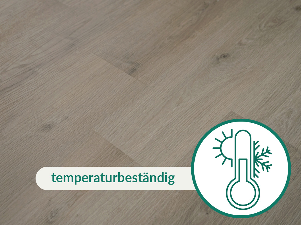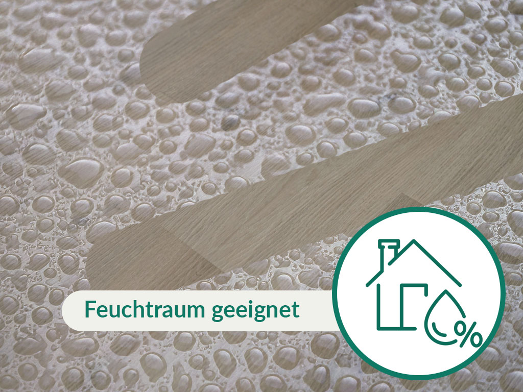 Optimaler Schutz vor Nässe ist ein besonderes Merkmal dieses hochwertigen Produkts. Es ist daher für die Verlegung in Feuchträumen bestens geeignet. Dank seiner guten Wärmeleitfähigkeit kann der Vinylboden über einer Warmwasser-Fußbodenheizung verlegt werden.