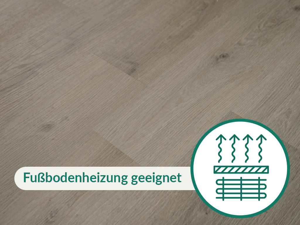Für die Verlegung auf einer Warmwasser-Fußbodenheizung ist der Vinylboden geeignet.