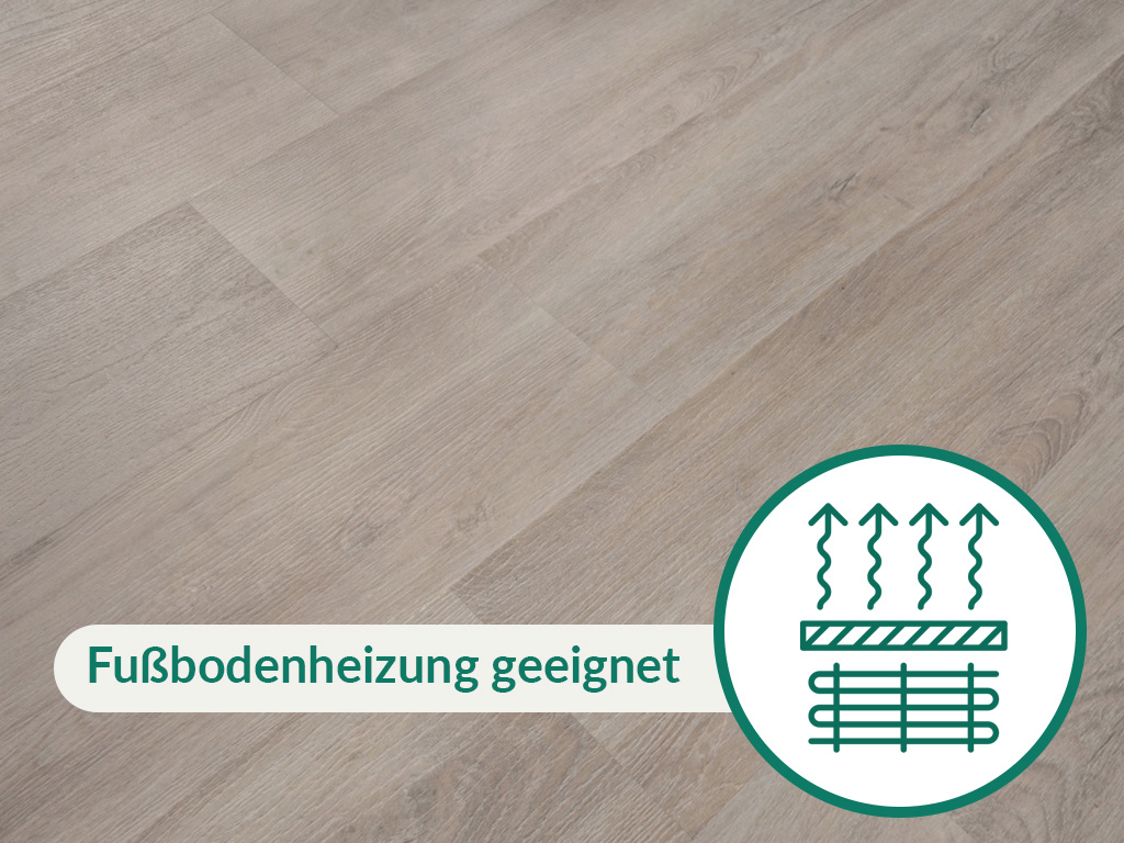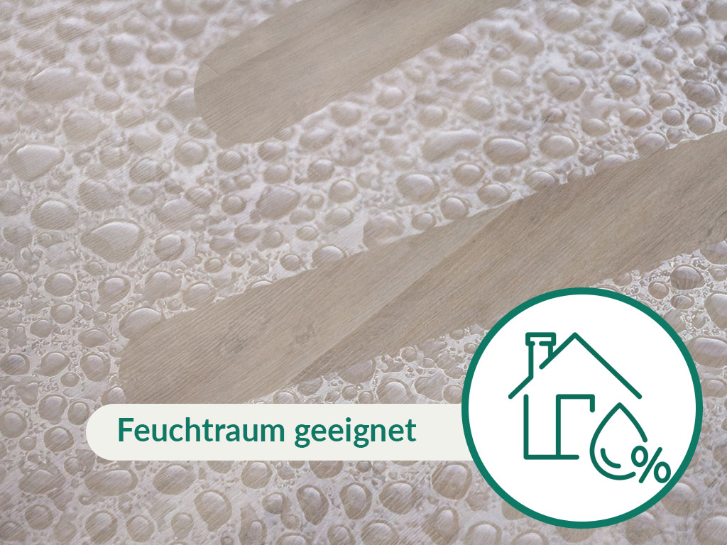In Feuchträumen wie Küche oder Bad kann dieser Artikel dank seiner Resistenz gegen Nässe bedenkenlos verlegt werden. Die Verlegung über einer Warmwasser-Fußbodenheizung ist kein Problem.