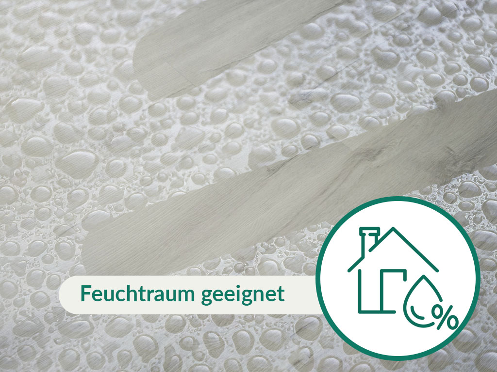 In Feuchträumen wie Küche oder Bad kann dieser Artikel dank seiner Resistenz gegen Nässe bedenkenlos verlegt werden. Die Verlegung über einer Warmwasser-Fußbodenheizung ist kein Problem.