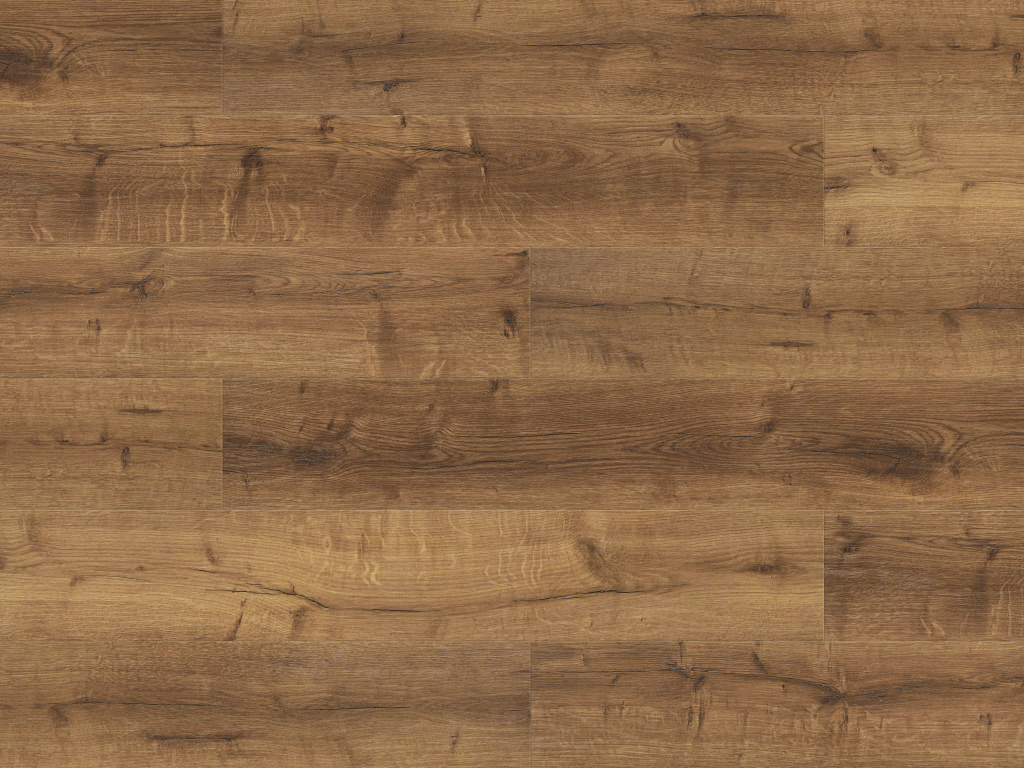 Die typische Eichenholzmaserung des Dekors strahlt zeitlose Klasse und behagliche Wärme aus. Landhausdielen wirken mit ihrer 1-Stab-Optik elegant, rustikal und voller Charakter. Durch die fugenlose Optik schmiegt sich Diele perfekt an Diele – für ein ebenmäßiges Gesamtbild, das die Fläche betont. Die Porenstruktur der Oberfläche sorgt für mehr Dynamik und Lebendigkeit als bei einem glatten Boden.