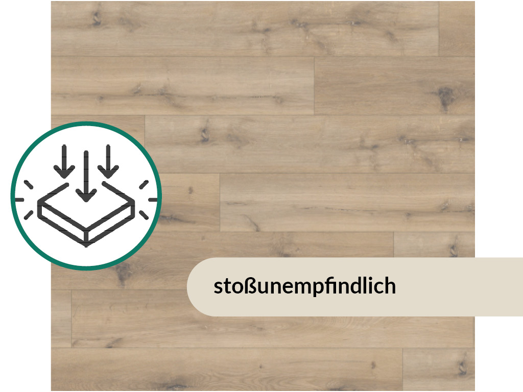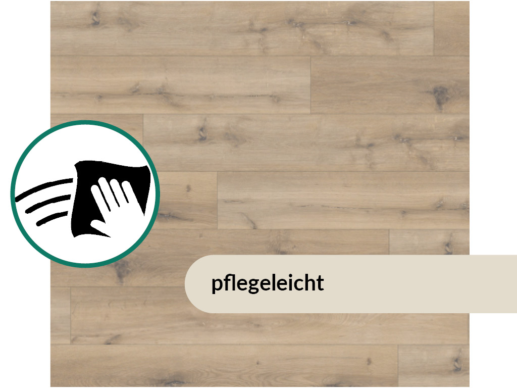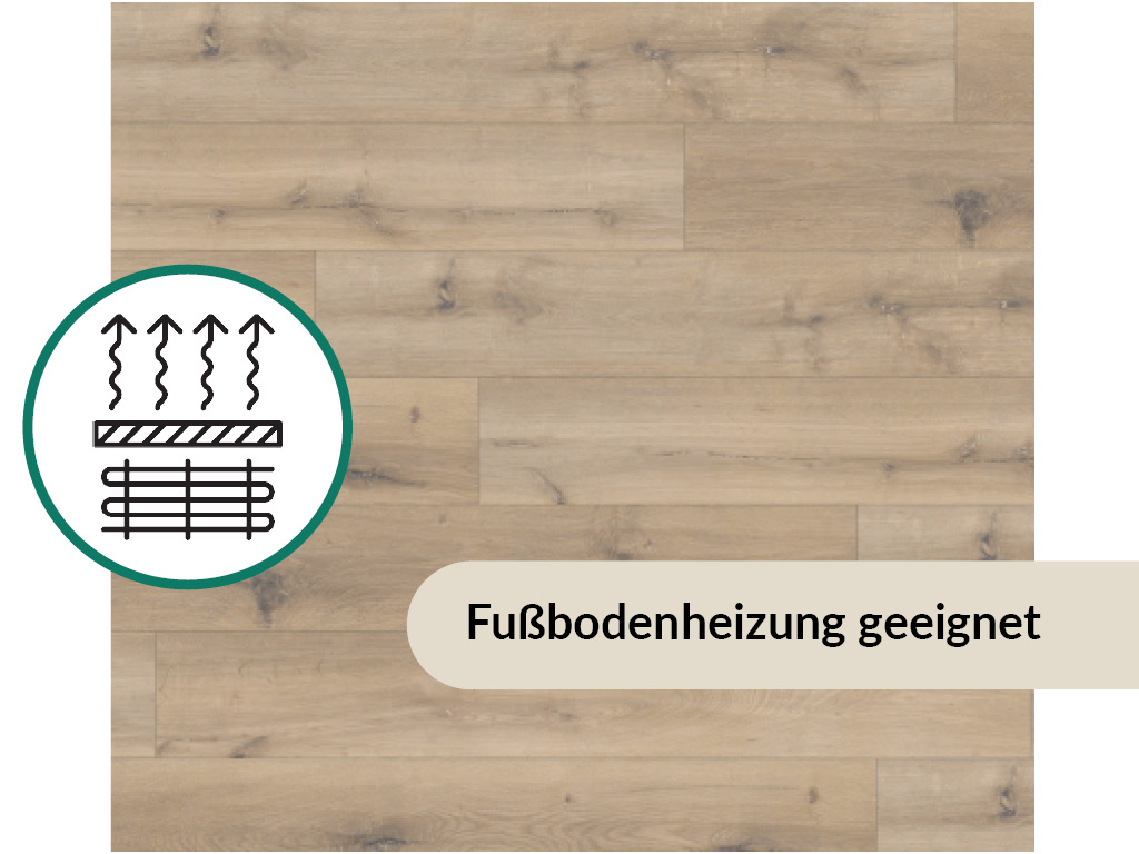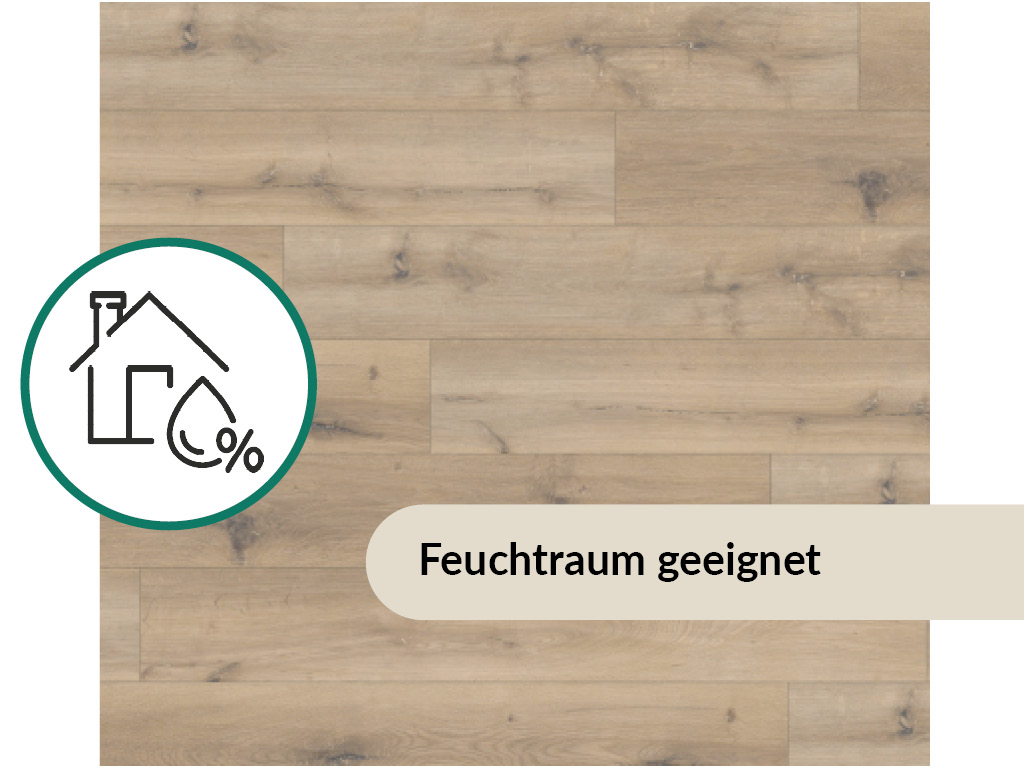 Durch die 0,2 mm dicke Nutzschicht, die die Oberfläche bedeckt, ist der Bodenbelag besonders langlebig. Außerdem schützt diese Schicht vor Kratzern und Stößen. Optimaler Schutz vor Nässe ist ein besonderes Merkmal dieses hochwertigen Produkts. Es ist daher für die Verlegung in Feuchträumen bestens geeignet. Dank der hervorragenden thermischen Leitfähigkeit eignet sich der Boden sehr gut zur Verlegung über einer Warmwasserfußbodenheizung.