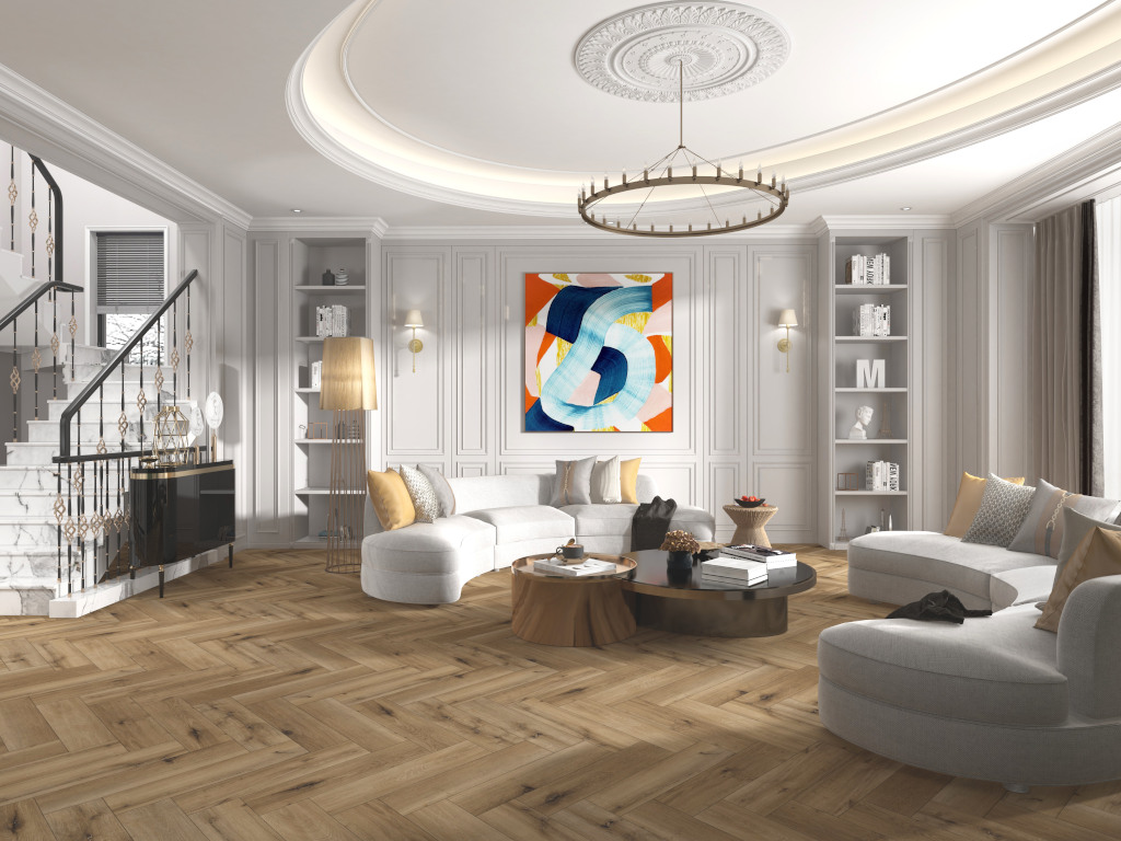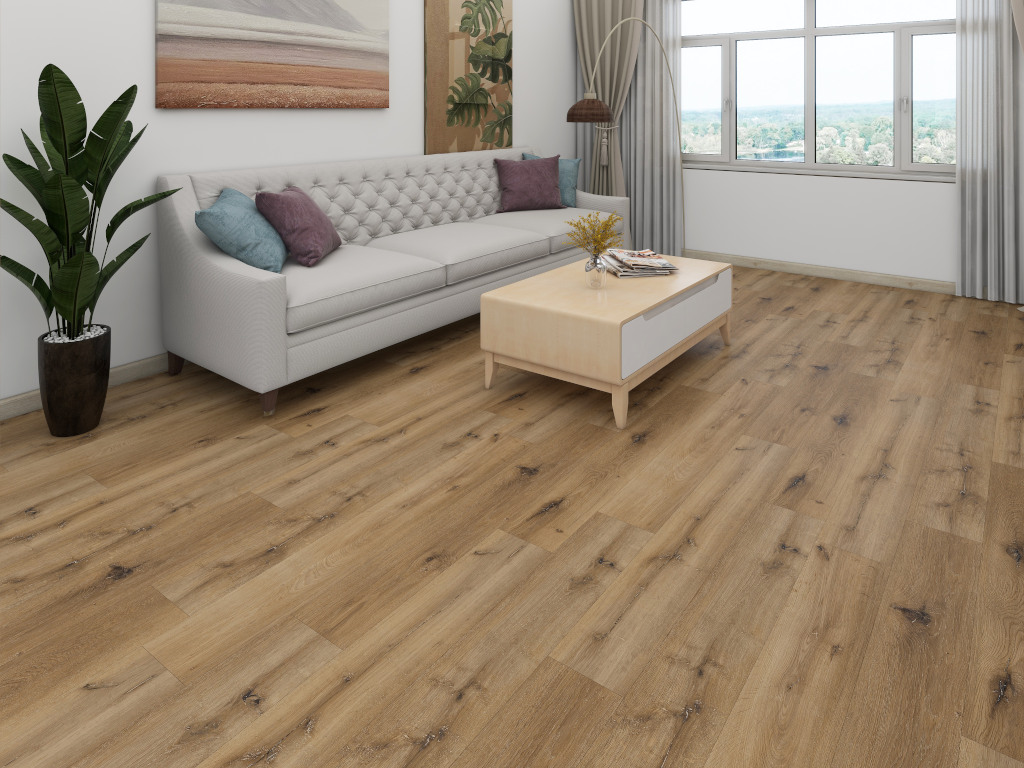 Die markante Eichenholzmaserung des Dekors vermittelt Behaglichkeit und natürliche Lebendigkeit. Landhausdielen wirken mit ihrer 1-Stab-Optik elegant, rustikal und voller Charakter. Durch die fugenlose Optik schmiegt sich Diele perfekt an Diele – für ein ebenmäßiges Gesamtbild, das die Fläche betont. Aufgrund ihrer glatten Oberflächenstruktur sind die Dielen zeitlos elegant und pflegeleicht.