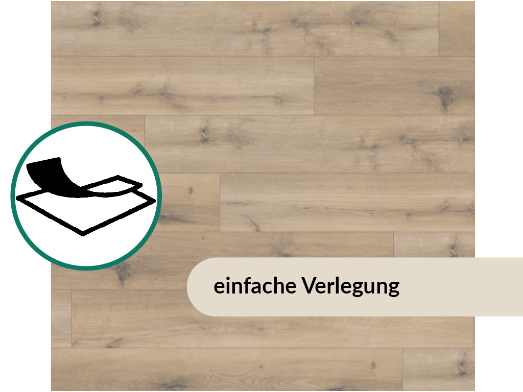 Diese Vinylvariante ist nur für die vollflächige Verklebung geeignet. Mit der Nutzungsklasse (NK) 22 eignet sich dieser Bodenbelag im privaten Bereich für Räume mit durchschnittlicher Beanspruchung, z. B. für Wohn- und Esszimmer, Arbeitszimmer oder Hobbyräume.