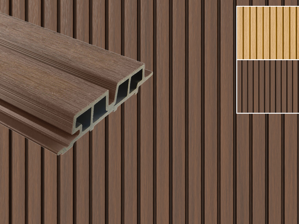 Die WPC Fassadenprofile WEO60 können sowohl vertikal als auch horizontal verwendet werden. - Fleckenunempfindlich dank der zusätzlichen Ummantelung