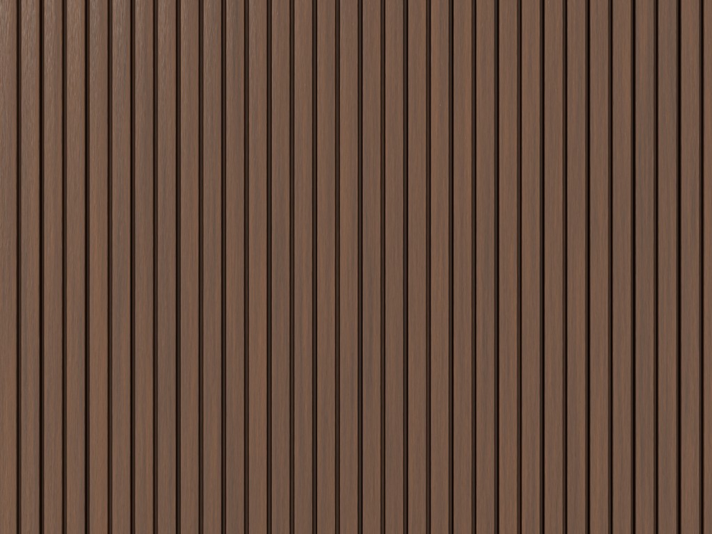Optisch wirkt die Fassadenverkleidung wie feine, einzelne Rhombusprofile. Jedoch handelt es sich um eine geschlossen Verkleidung mit Nut + Federprofilen. Ein einzigartiges Aussehen, das angenehm zu berührendes Material und intensive, zufällig kombinierte holzähnliche Farben verbindet. Unauffällige Befestigung mit Schraubköpfen in Profilfarbe.