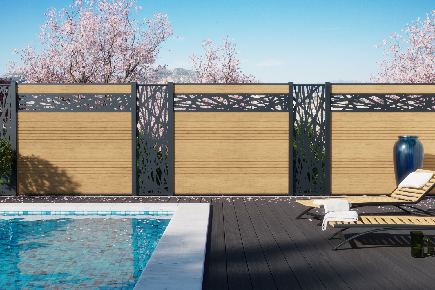 Der WPC Zaun Boston – Kollektion Modern ist ein hochwertiges und langlebiges Sichtschutzzaun-System. Durch den modularen Aufbau kann der Zaun individuell an verschiedene Gegebenheiten und nach Deinen Wünschen gestaltet werden. Die WPC Module mit 15 cm Breite der Serie BOSTON sind perfekt zum Bau von Sichtschutzzäunen geeignet. Die einzelnen Modulbretter werden in die spezielle Aluminiumpfosten der Bosten-Serie eingeschoben und so ein optisch ansprechender Zaun gebaut.