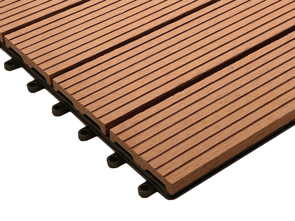 WPC-Fliese Teak geriffeltPerfekt auch für Balkone, barfußfreundlich, 60 x 30 cm