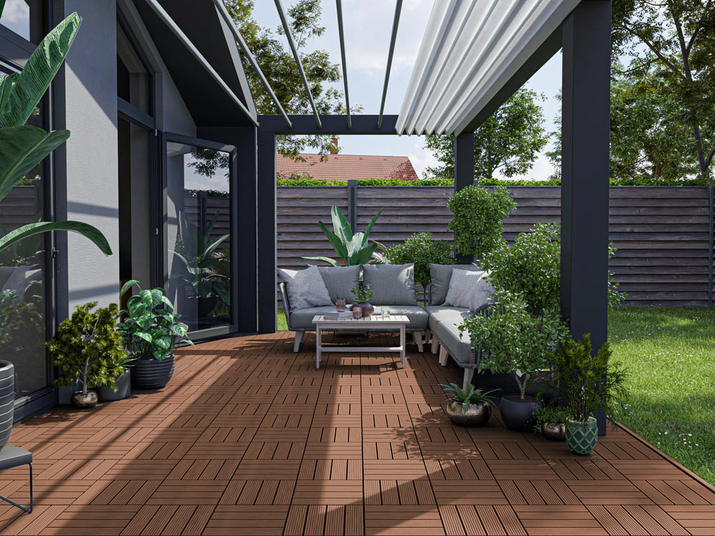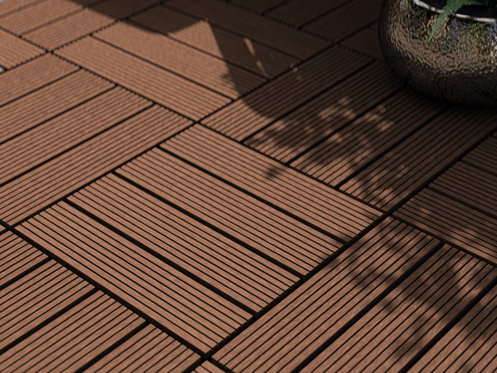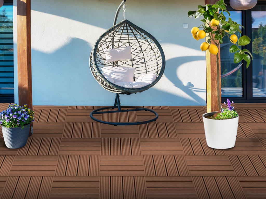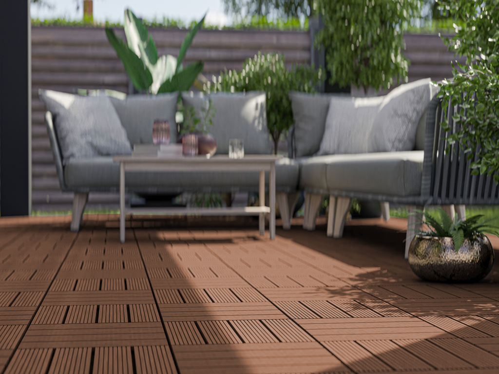 Terrassenfliese 30 x 30 cm aus Kunststoff BraunRutschsicher, pflegeleicht & wetterfest, leichte Verlegung, Klickfliese, 10 Stück pro Pack